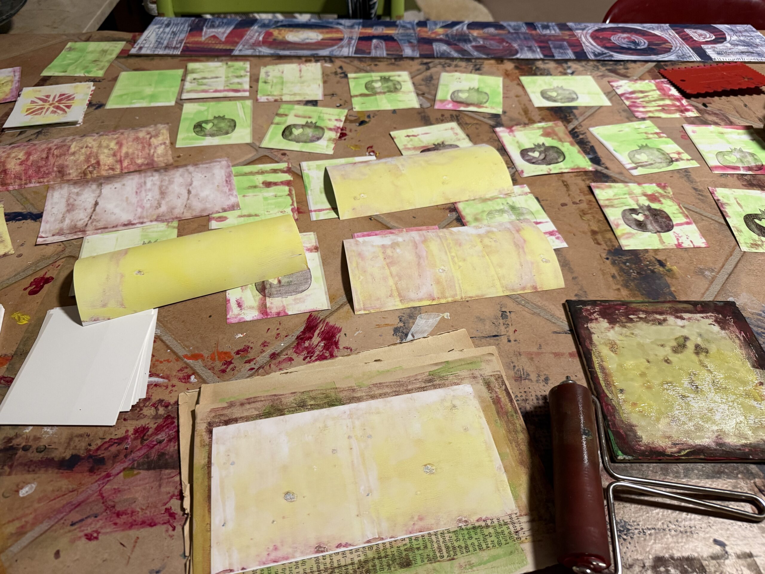 Experimentelles sehr individuelles Farberlebnis mit tollen Ergebnissen die sich zu Schachtel, Karten, Geschenkpapier, Tüten, Button weiterverarbeiten lassen.